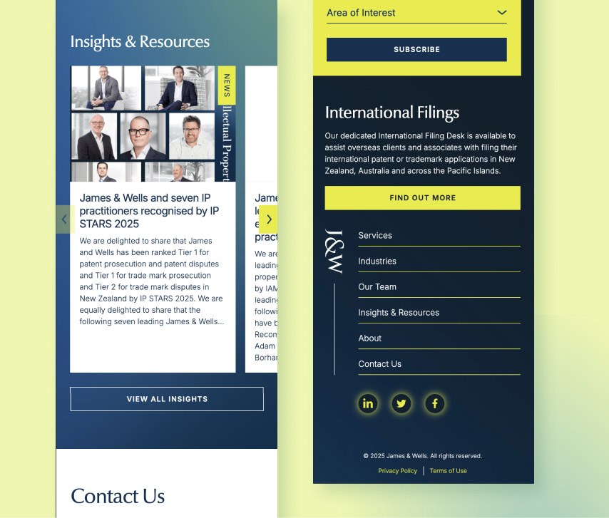 To better showcase their expertise + align with a refreshed brand identity, James & Wells needed a new website that would reflect their standing as industry leaders